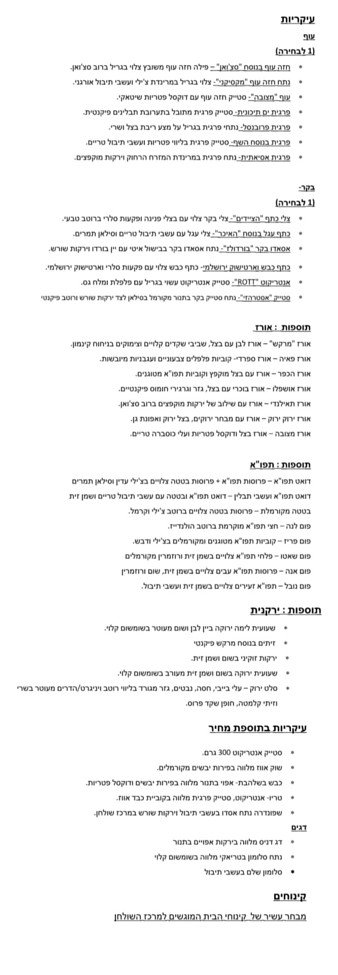 תפריט ערב בליאל גרדנס | אולם אירועים בפתח תקווה | גן אירועים בפתח תקווה