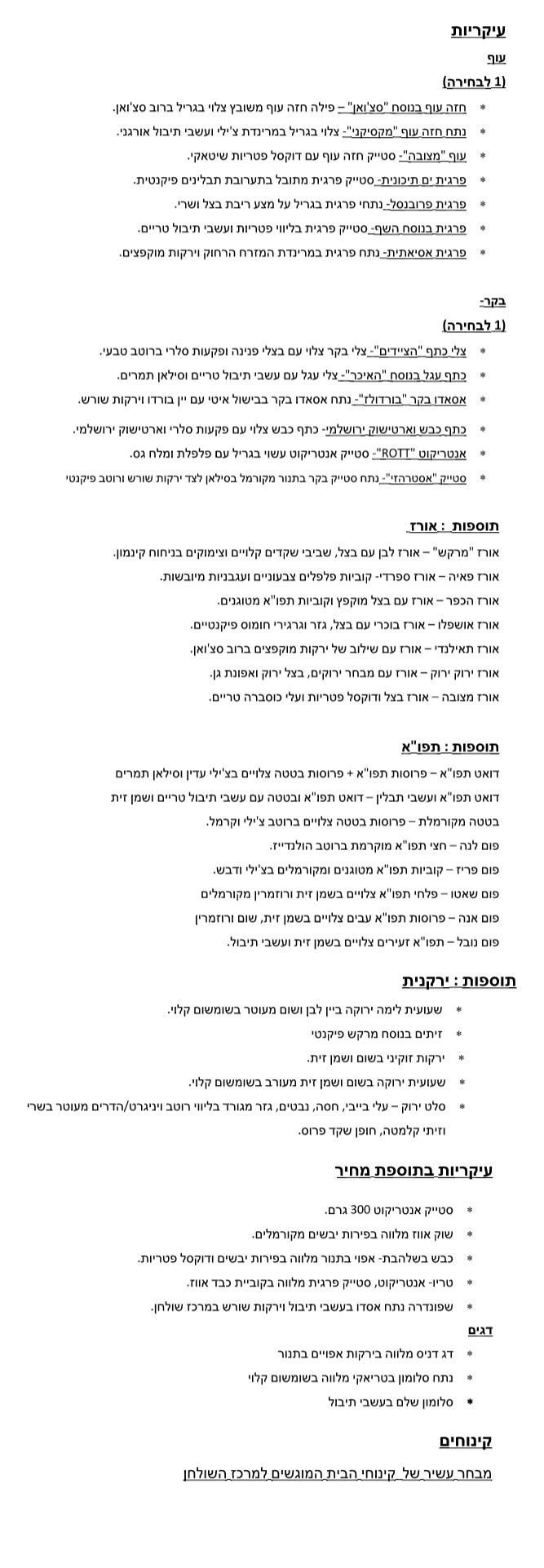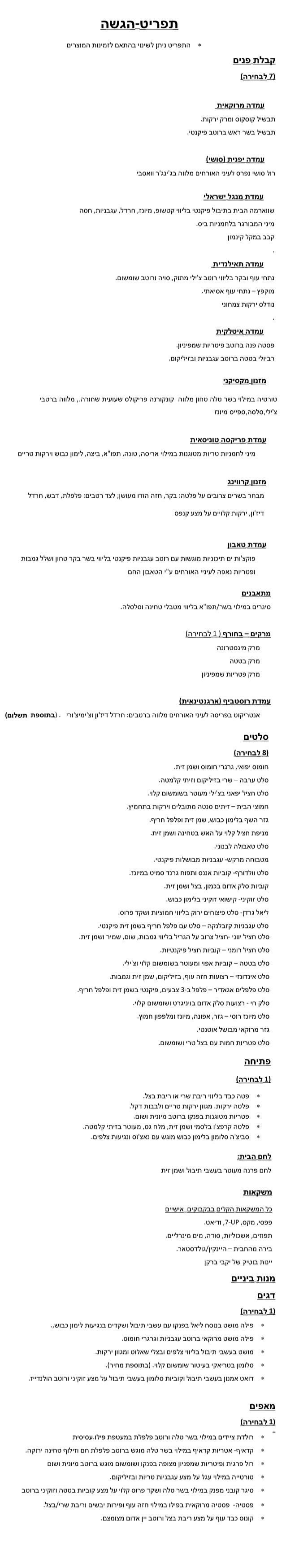 תפריט ערב | אולם אירועים בפתח תקווה